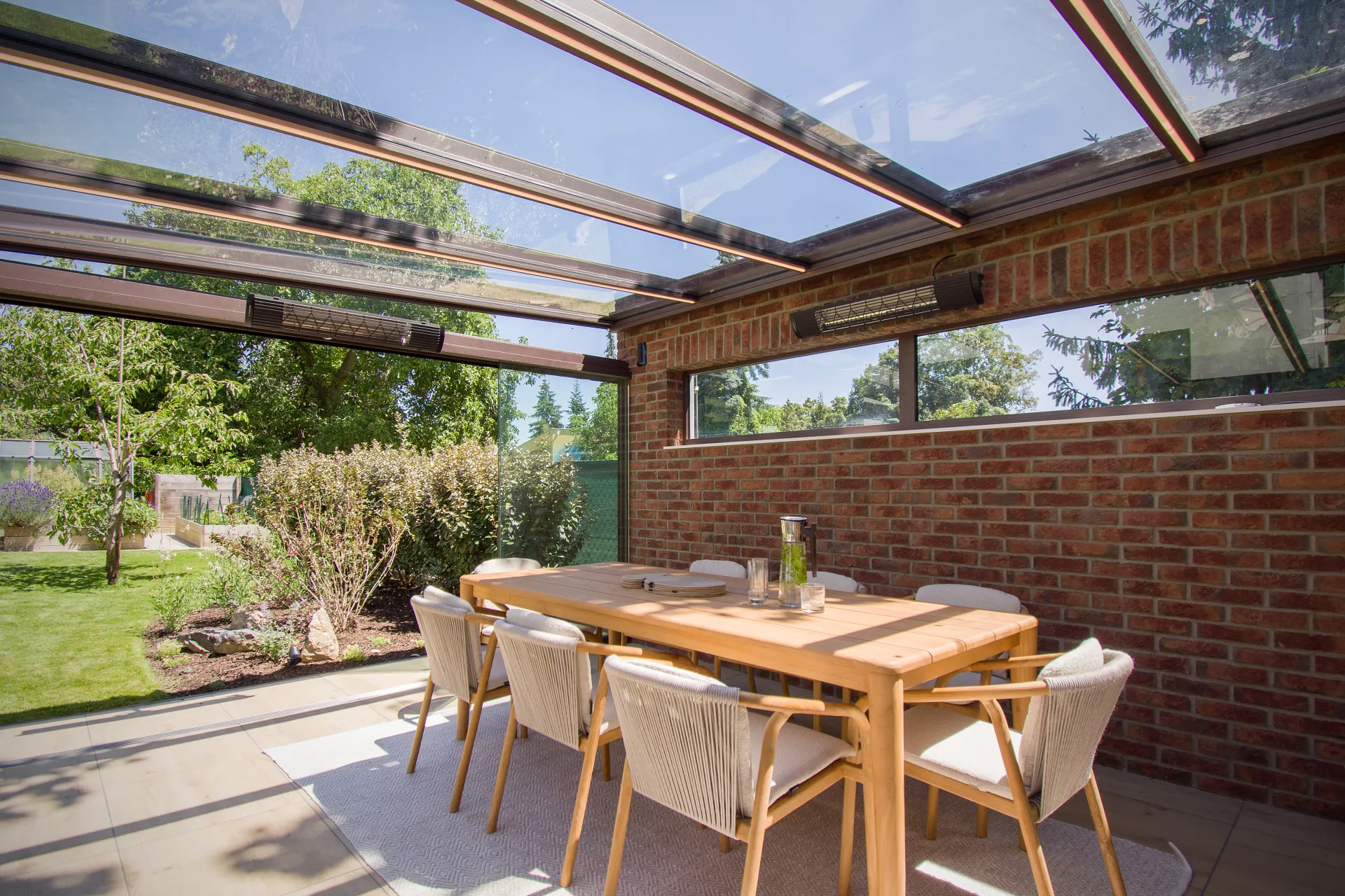 - posuvné bezrámové stěny, které jsou prakticky neviditelné, přitom výborně chrání před chladem a deštěm (díky mikroventilaci téměř nerosí),